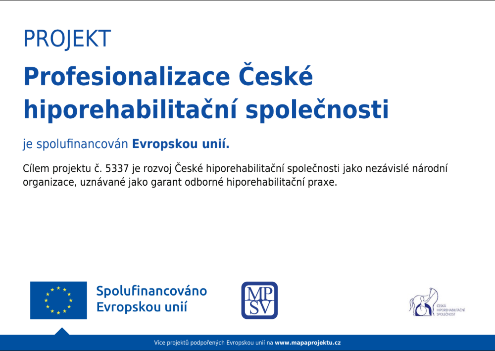 Naše stáj se zapojila do projektu České hiporehabilitační společnosti, který podporuje střediska, posiluje odborné a manažerské schopnosti pracovníků a zvyšuje povědomí veřejnosti o přínosech hiporehabilitace. Projekt je financován z Evropského sociálního fondu (ESF) v období 1. 6. 2025 – 30. 11. 2026.